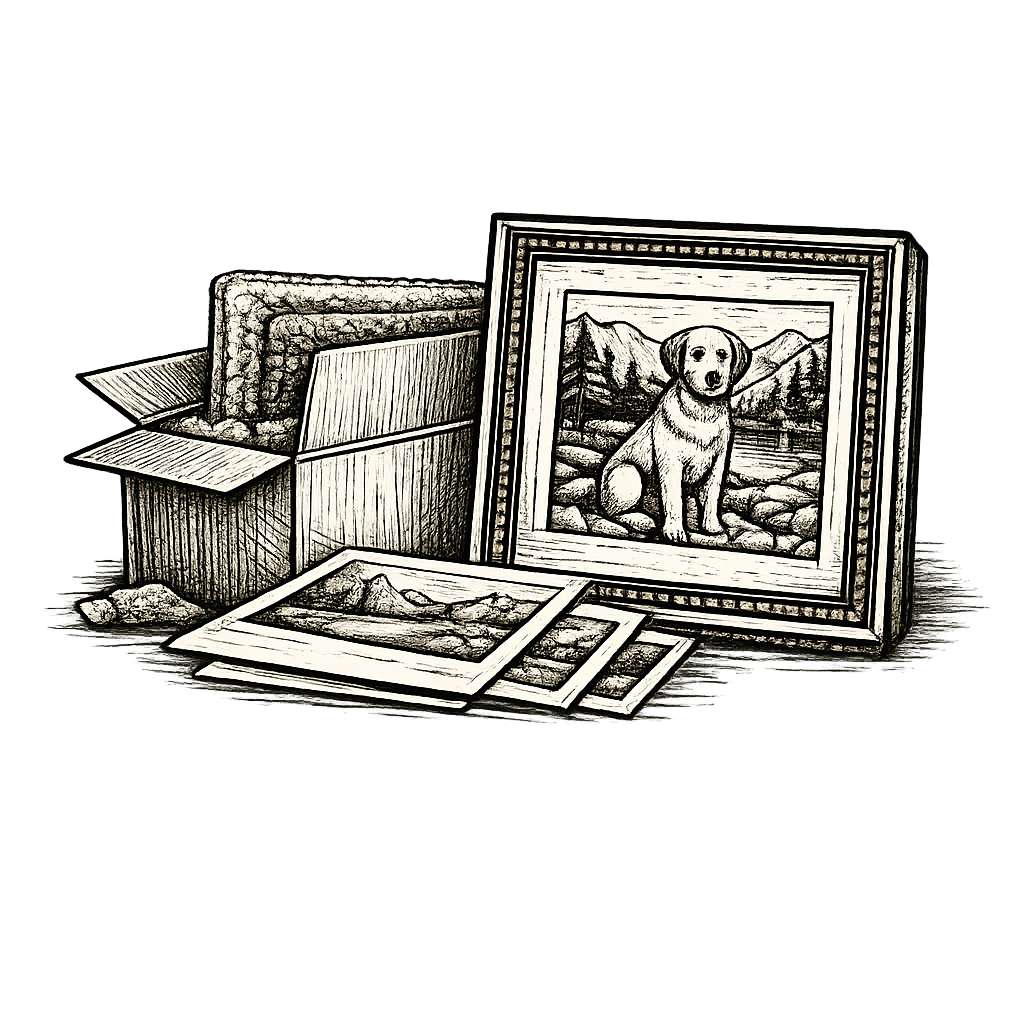 Each experience is paired with a finished piece of art that distills the story and feeling of the day into something lasting, crafted to be lived with, not simply looked at.